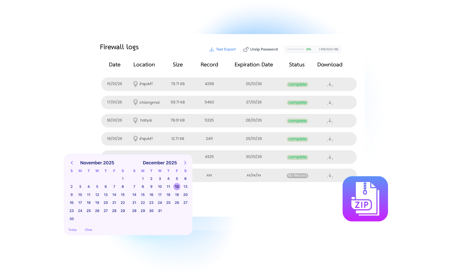 ทุกไฟล์ Log มาพร้อมไฟล์ Hash (MD5) เพื่อใช้ตรวจสอบความถูกต้องของข้อมูล ยืนยันว่าไม่มีการแก้ไขหรือเปลี่ยนแปลงหลังจากบันทึก